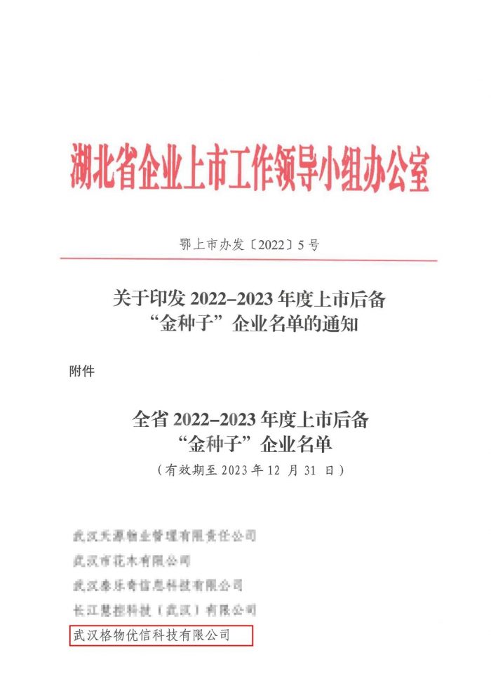5月23日,湖北省企業(yè)上市工作領(lǐng)導(dǎo)小組辦公室發(fā)布“2022-2023年度上市后備‘金種子’企業(yè)”名單,格物優(yōu)信…